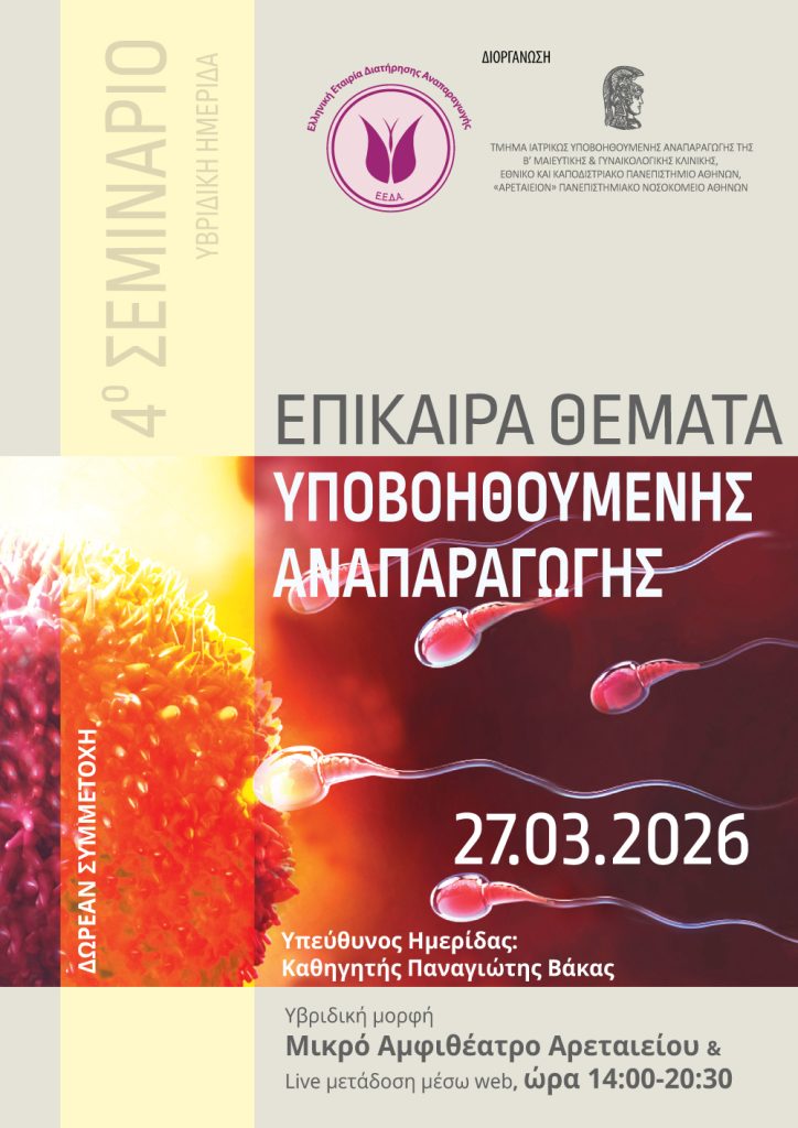 Παρασκευή 3 Απριλίου 2026, Συνεδριακό Κέντρο Ελληνικής Εταιρείας Αναπαραγωγικής Ιατρικής (Ε.Ε.Α.Ι. - Παπανικολή 6-10, Χαλάνδρι)