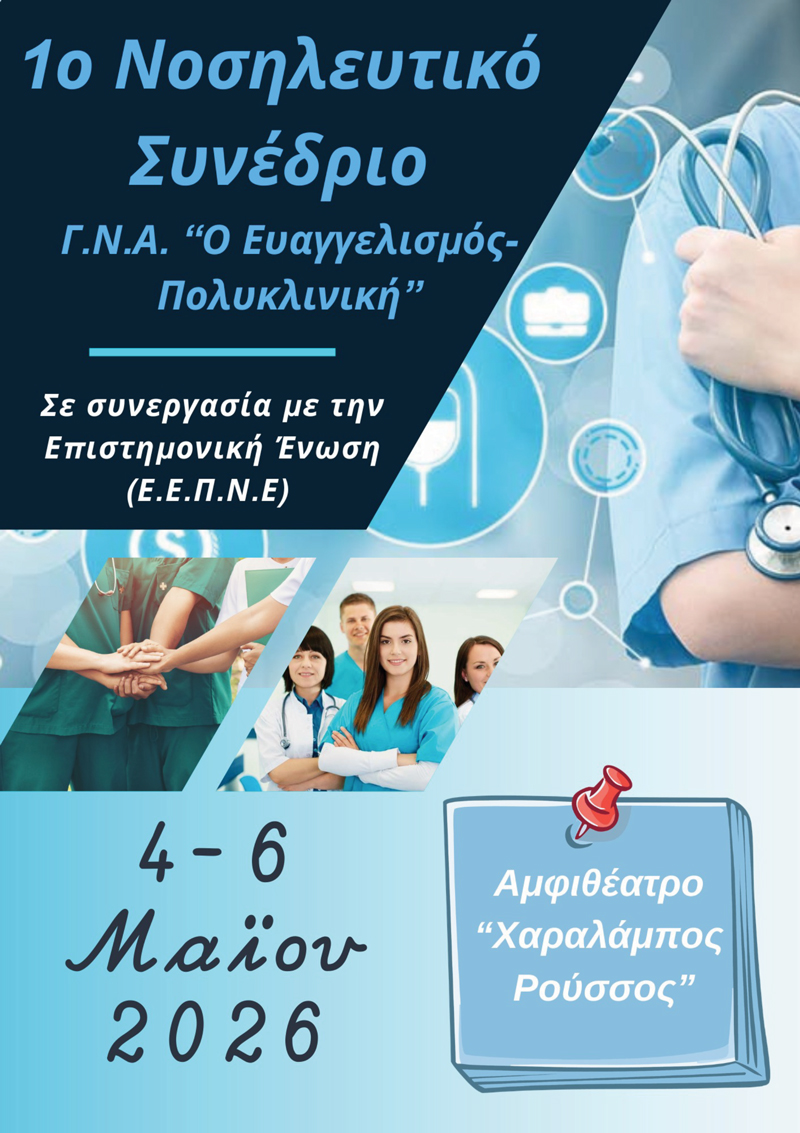 Με ιδιαίτερη χαρά σας καλωσορίζω στο 1ο Νοσηλευτικό Συνέδριο του Νοσοκομείου μας, το οποίο διεξάγεται σε συνεργασία με την Ένωση Επιστημονικού Προσωπικού του Γ.Ν.Α. «Ο Ευαγγελισμός» (Ε.Ε.Π.Ν.Ε.).